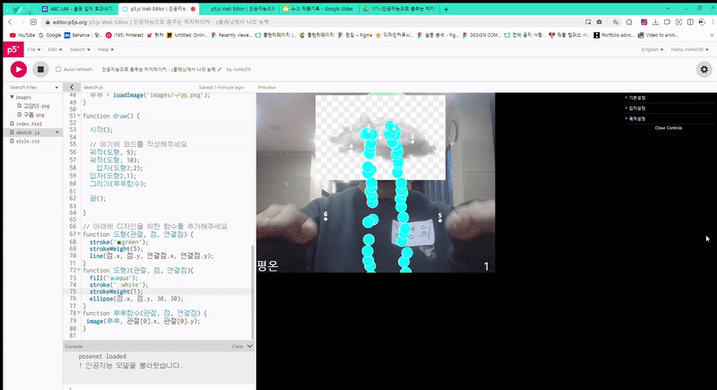 Experimenting with movements and codes to deliver the story With p5.js & Google Teachable Machine & Posenet